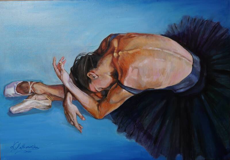 Deze collectie omarmt de schoonheid van ballet, niet alleen in de dans , maar ook in rust. De Ballerina heeft elke spier in haar lichaam gebruikt voor haar performance. De schijnwerpers zijn in deze doeken op haar gericht.