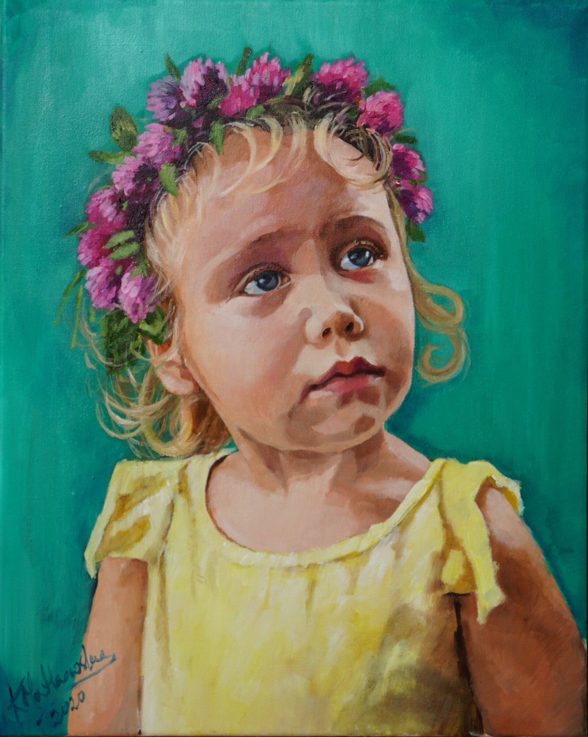 Met groot plezier, schilder ik portretten. Soms in een neutrale achtergrond maar het liefst met heel veel fantasie. Telkens met veel kleur en liefde !